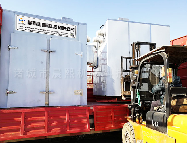 7.桑葚烘干機底部設有雙滑道,烘車裝滿烘盤后,可通過拖輪滑道,運送到烘干機里面,固定底部,