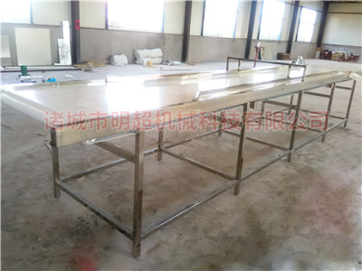 通過雙層輸送機輸送到漂燙機里面進行進行漂燙,可根據(jù)用戶漂燙不同的蔬菜溫度和時間可調,采用保溫系統(tǒng),使用硅酸鋁保溫,是目前超好的保溫材料,水可循環(huán)利用,水槽內的水溫度均勻。由于蔬菜漂燙的過程中,容易漂浮,在水槽上面單獨設計了負壓帶,防止蔬菜漂在水的上面,造成漂燙不一致。整機采用sus304不銹鋼材質,可連續(xù)漂燙。