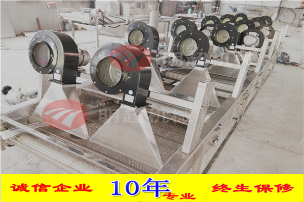 6.通過風刀將自然風轉換成強流風。風干機輸送網帶設計為多次翻轉輸送,確保產品兩面除水效果,風干機吹干效果良好 設備采用變頻輸送,速度可調輸送平穩。