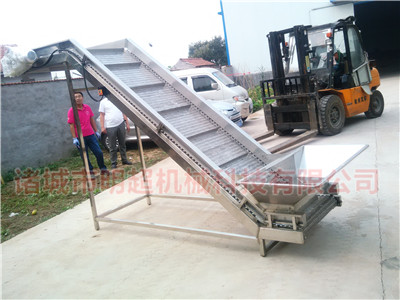 提升機直接將蔬菜提升到下一道工序。整機采用304不銹鋼制造,運行平穩,方便操作,節省人工并易于清洗。