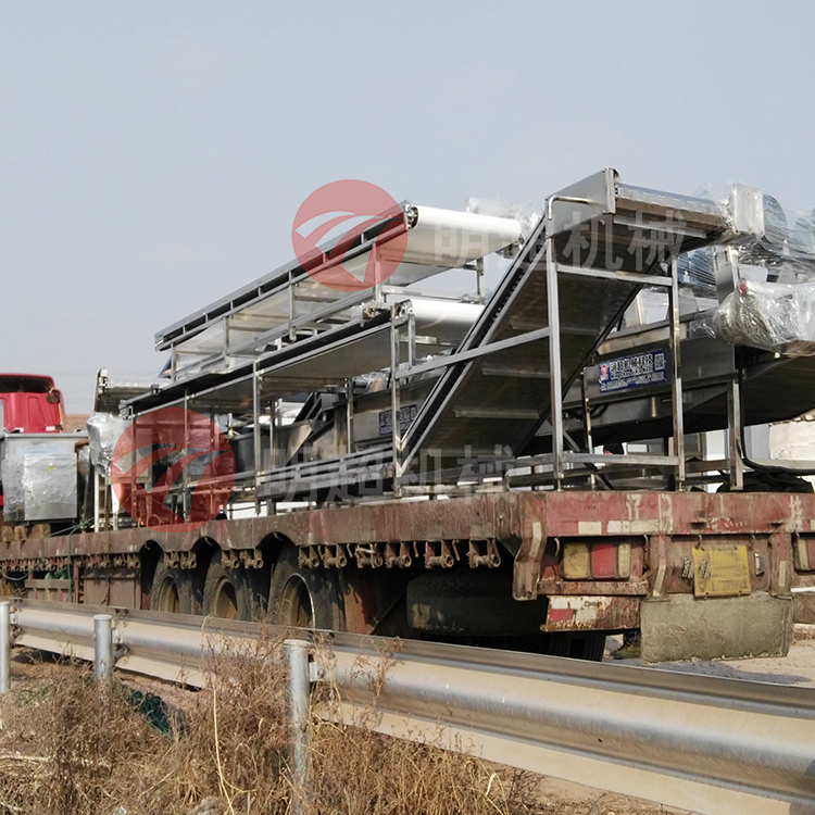 江西凈菜加工流水線 韭菜噴淋清洗風干生產線一體機發貨現場實拍圖